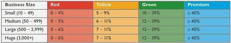 - Platinum / High Green / Medium Green – Perusahaan mempekerjakan jumlah pekerja Saudi yang cukup atau sangat tinggi. Ini menunjukkan kemampuan perusahaan untuk melakukan berbagai layanan pekerja asing seperti memperpanjang Iqama, memindahkan sponsor, atau mengubah job title.